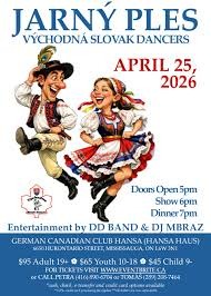 April 25: Come out and celebrate Jarný Ples with the Spring Ball at Hansa Haus and the Východná Slovak Dancers, music, and dinner.