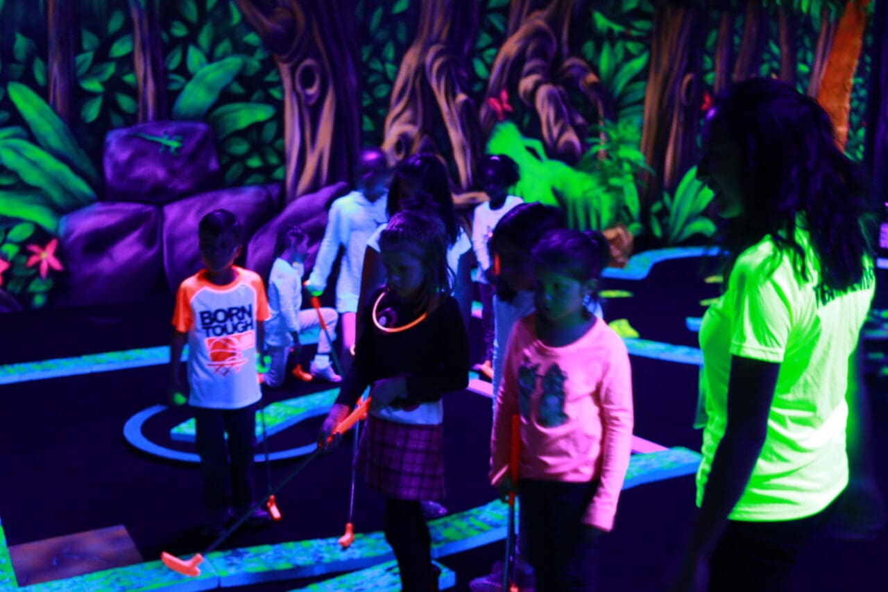 GlowZone 360 has glow‑in‑the‑dark mini‑golf, laser tag, and arcade games to help burn the excess energy off from sitting around too much.